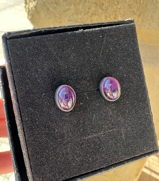 Sold outAmethyst silver oval stud earrings