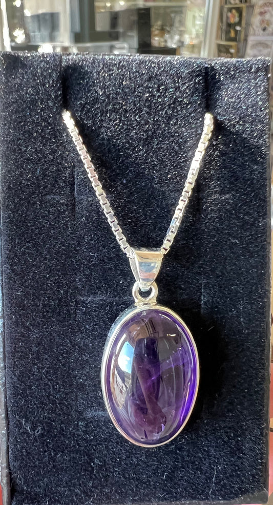 Sold outAmethyst silver oval necklace