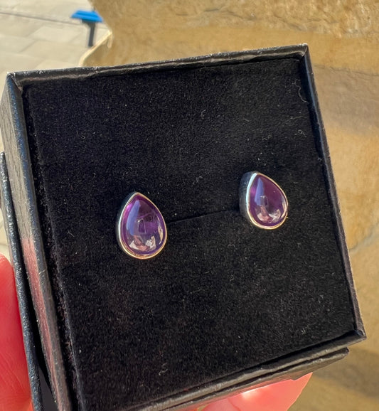 Amethyst silver teardrop studs