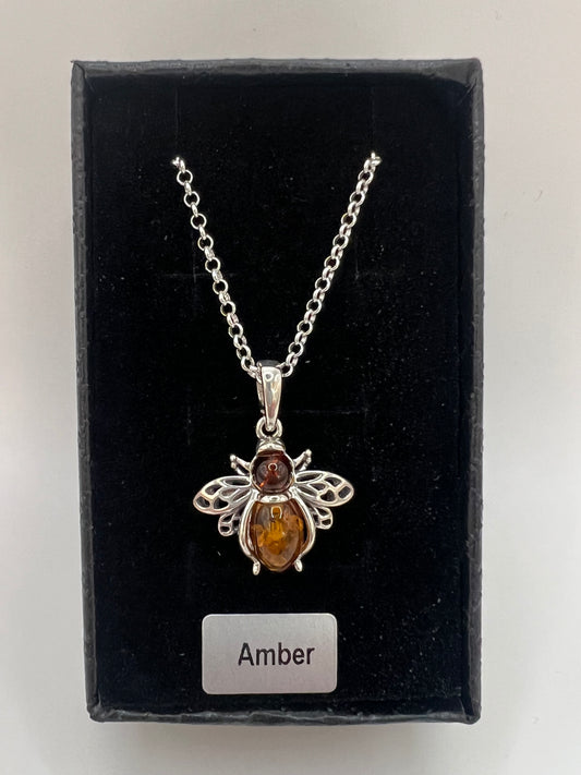 Amber silver bee necklace