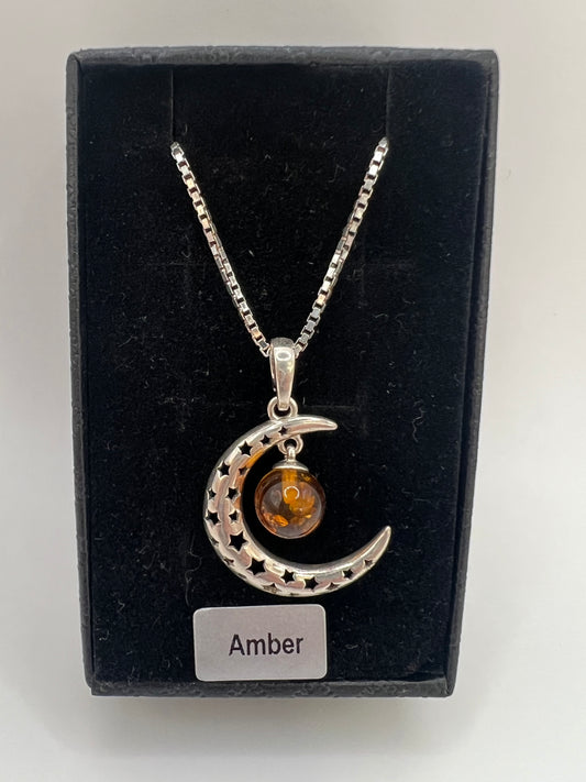 Amber silver moon necklace